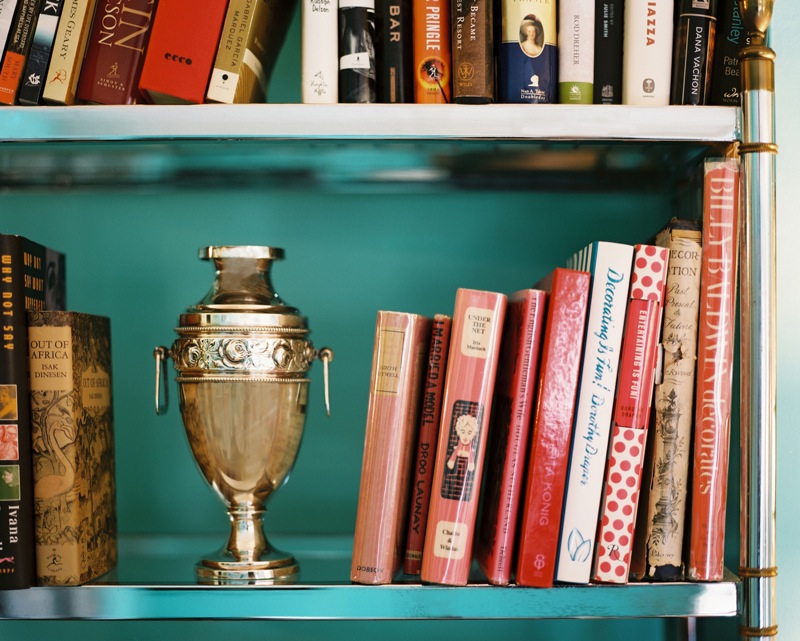 On Sunday I was at a dear friends house for our book club dinner we have each month. I noticed that her bookshelves in her study were painted a dark lacquered turquoise and I was captivated. On the walls hung beautiful oil painting of herself as a child and one of her mother in the 1940's. I am a neutral kind of girl but I have to say the colors in her home had me dreaming in color.
